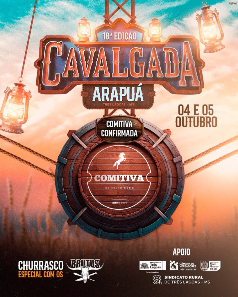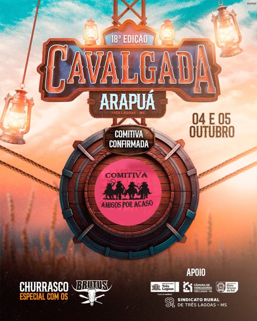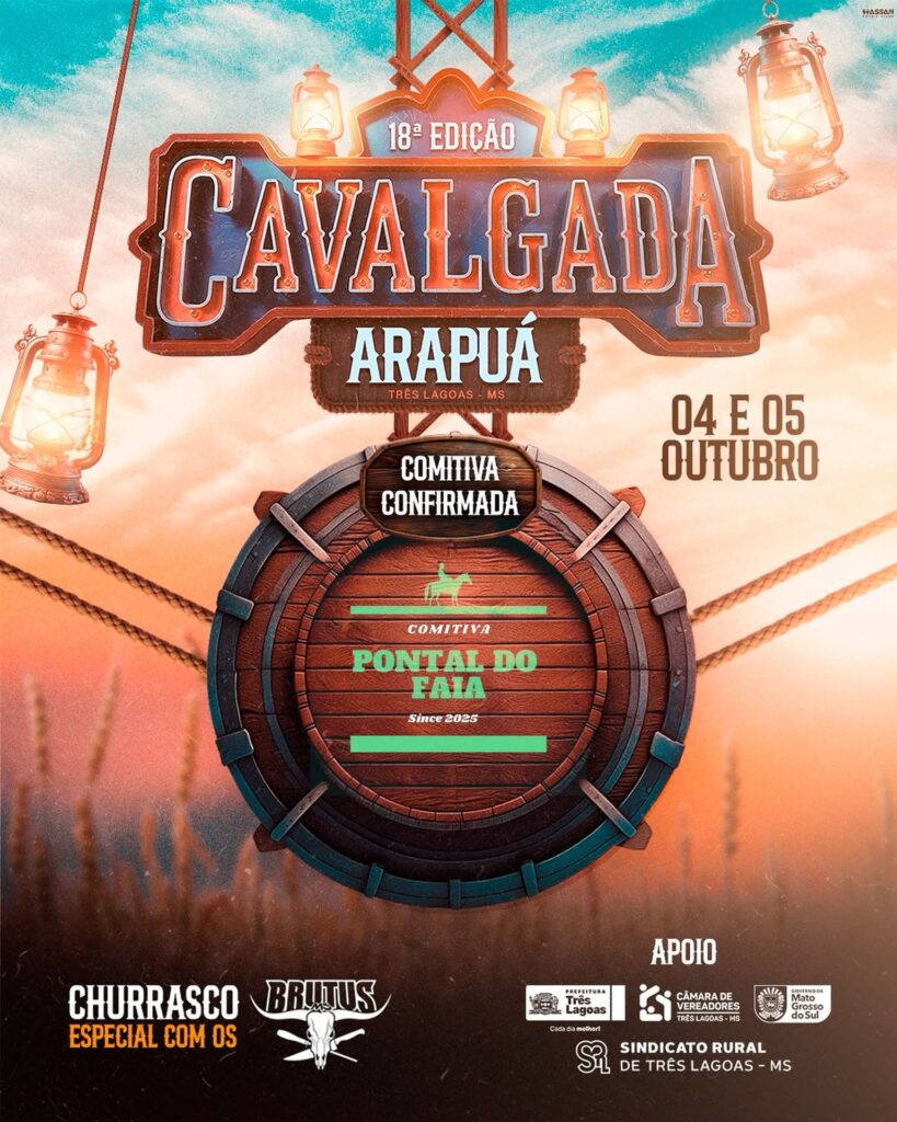 Aguarde com ansiedade os dias 4 e 5 de outubro, porque a 18ª Cavalgada de Arapuá, distrito de Três Lagoas, promete ser um espetáculo à parte com a presença marcante das comitivas!