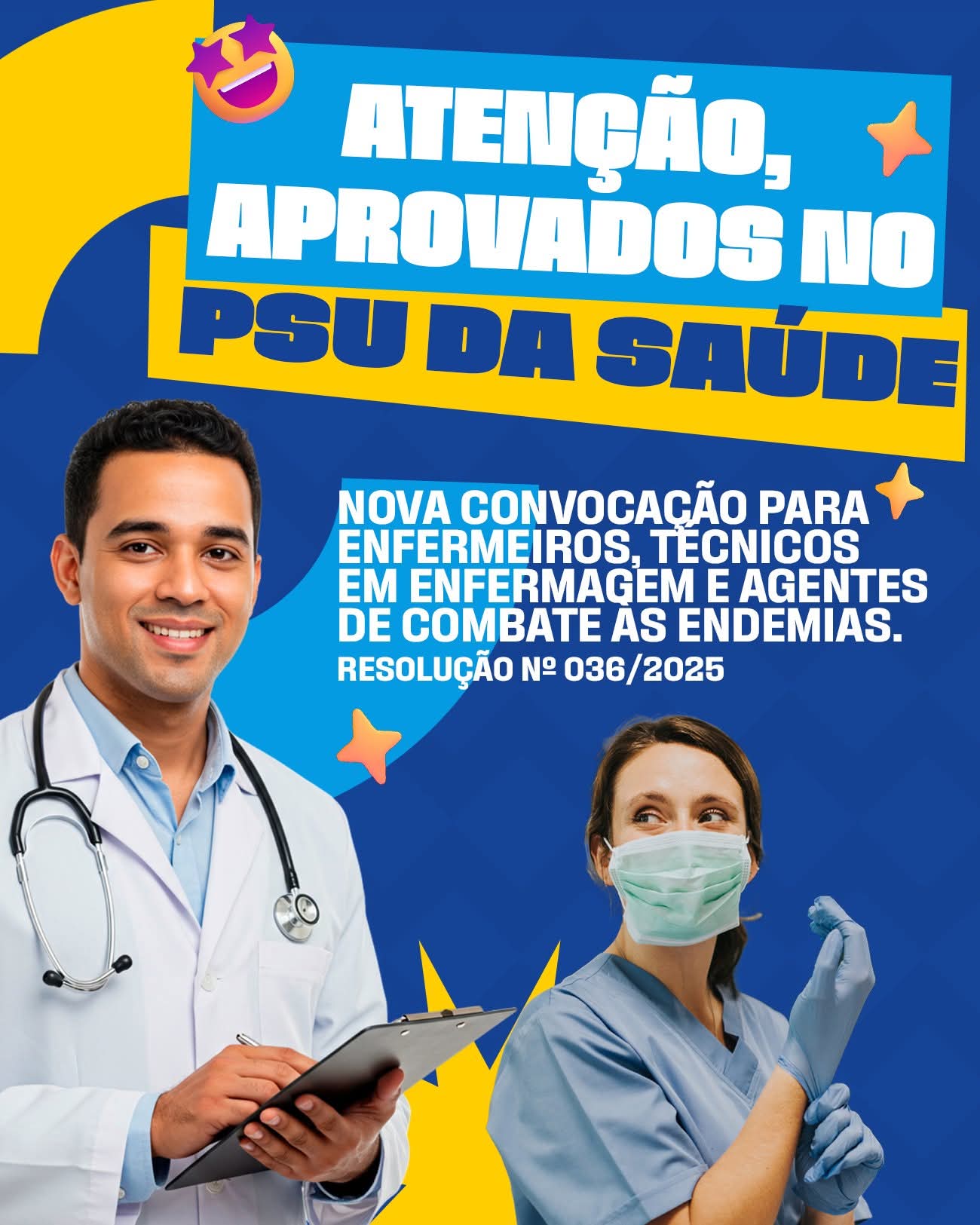 A Prefeitura de Três Lagoas publicou nesta sexta-feira (15/08) a Resolução nº 036/SEMAD/2025, convocando candidatos aprovados no PSU (Edital nº 007/2023) para a área da Saúde.
